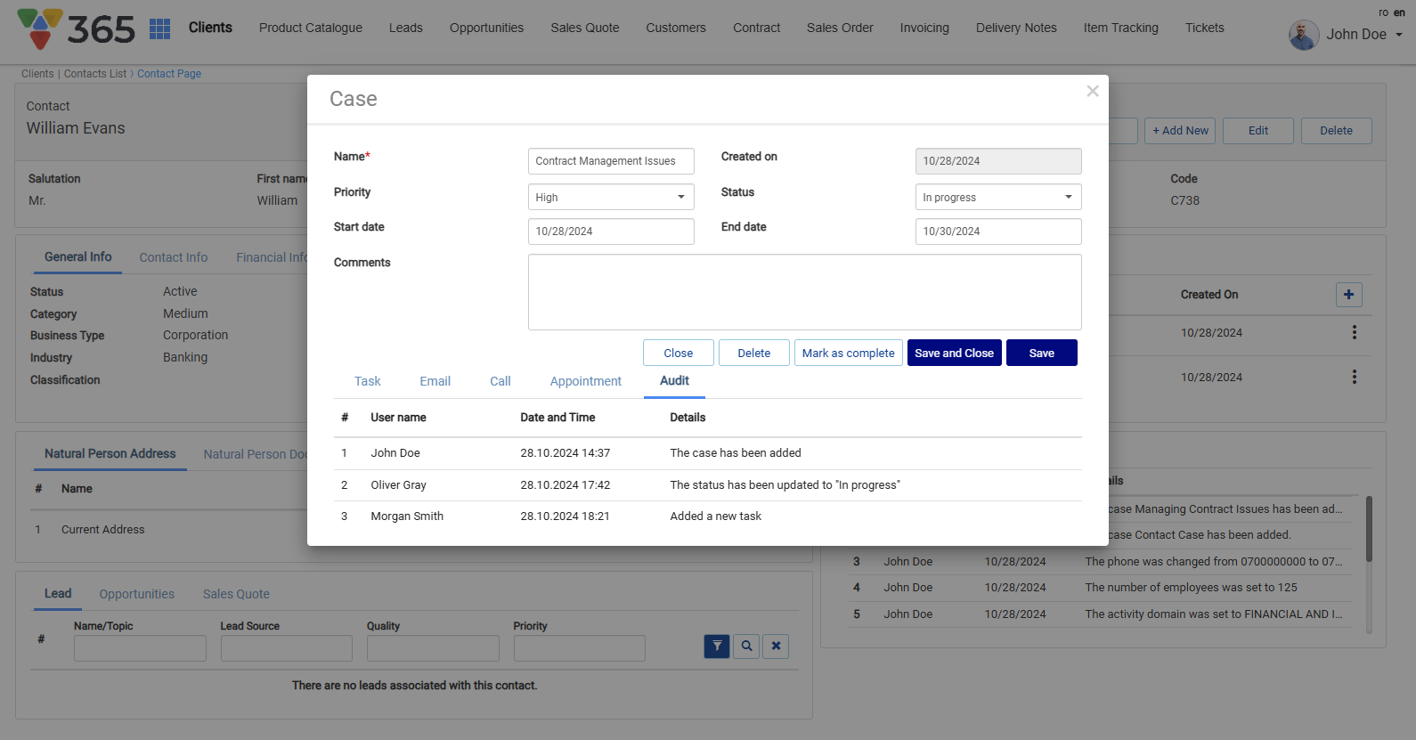 • Collaborate with team through cases, activities and post at entity level