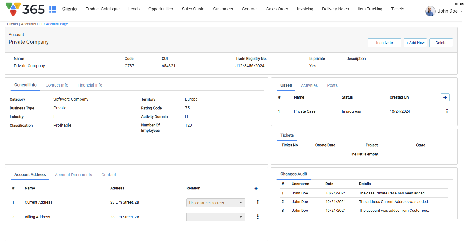 • All information is structured in specific sections: Summary information, General, Contact and Financial Information, Addresses and Documents