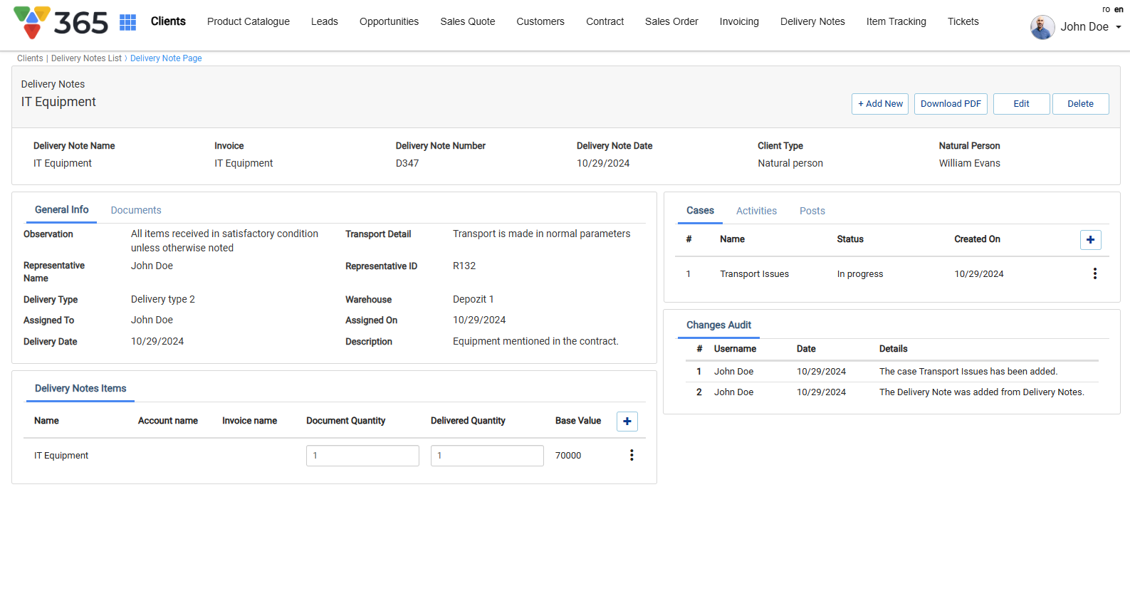 Simplifies the creation, tracking, and organization of delivery notes. It ensures accurate documentation, real-time updates, and easy access to delivery records.