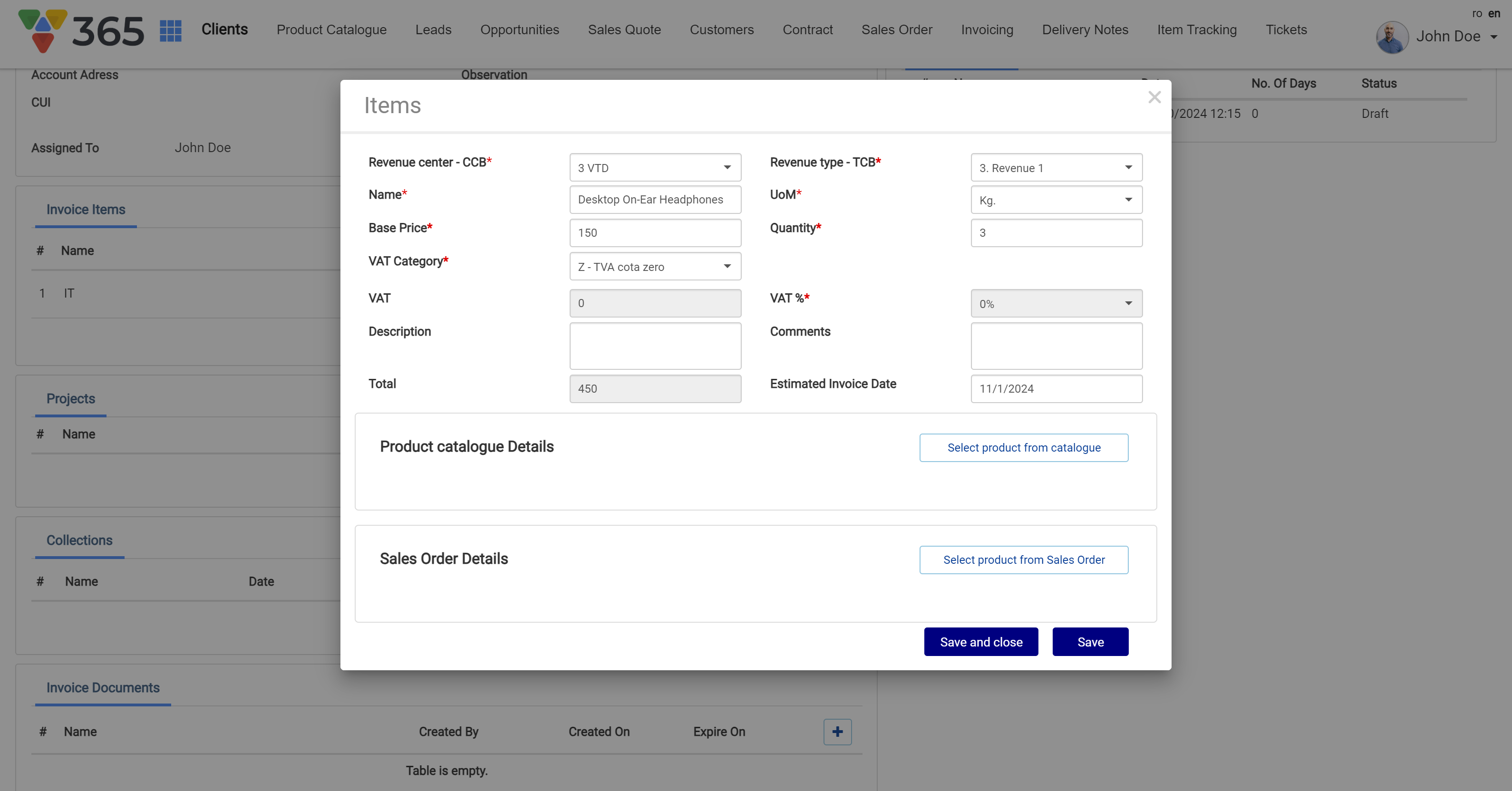 • Invoicing items can be linked with product catalogue, opportunity, offer and order