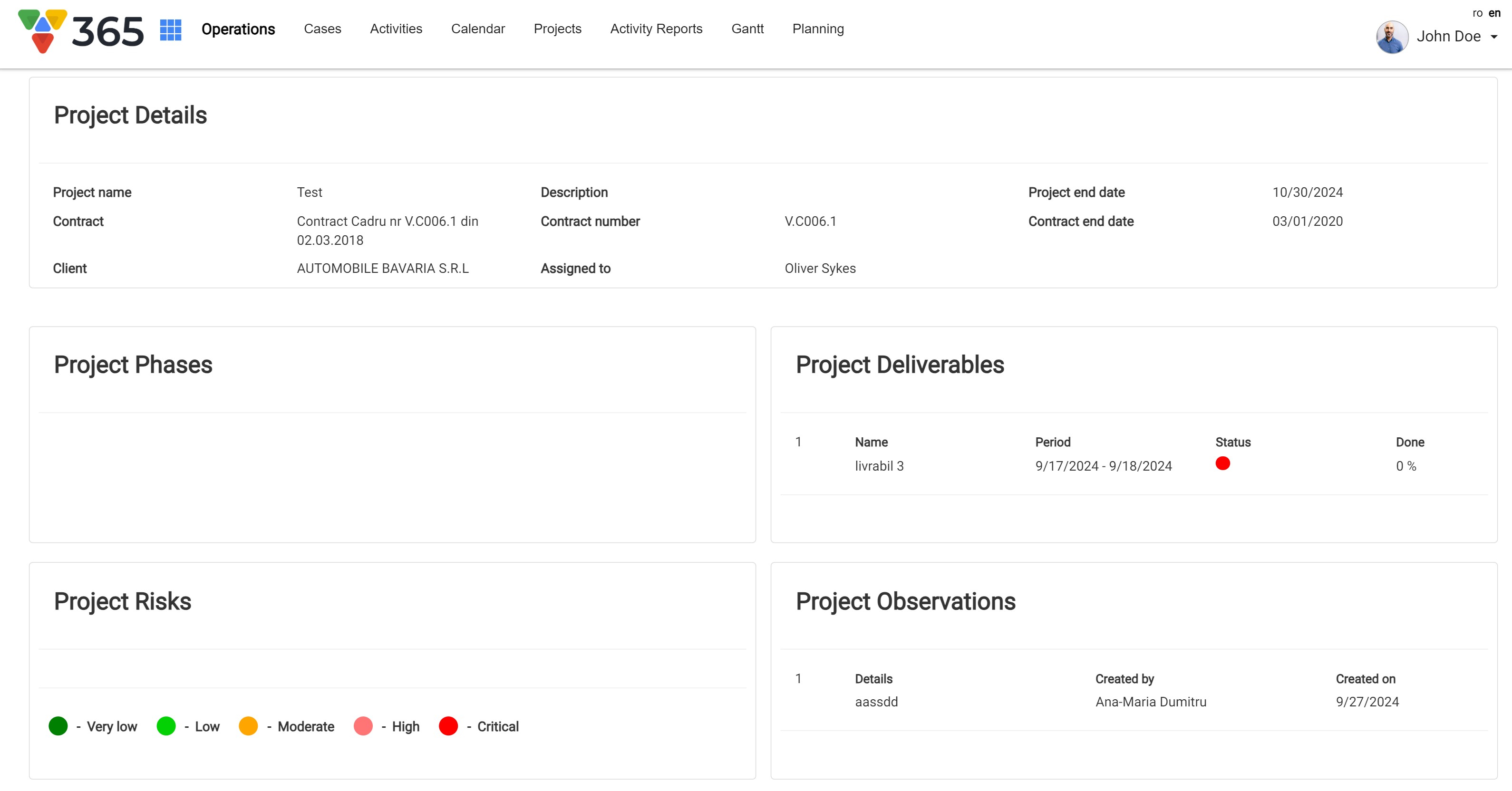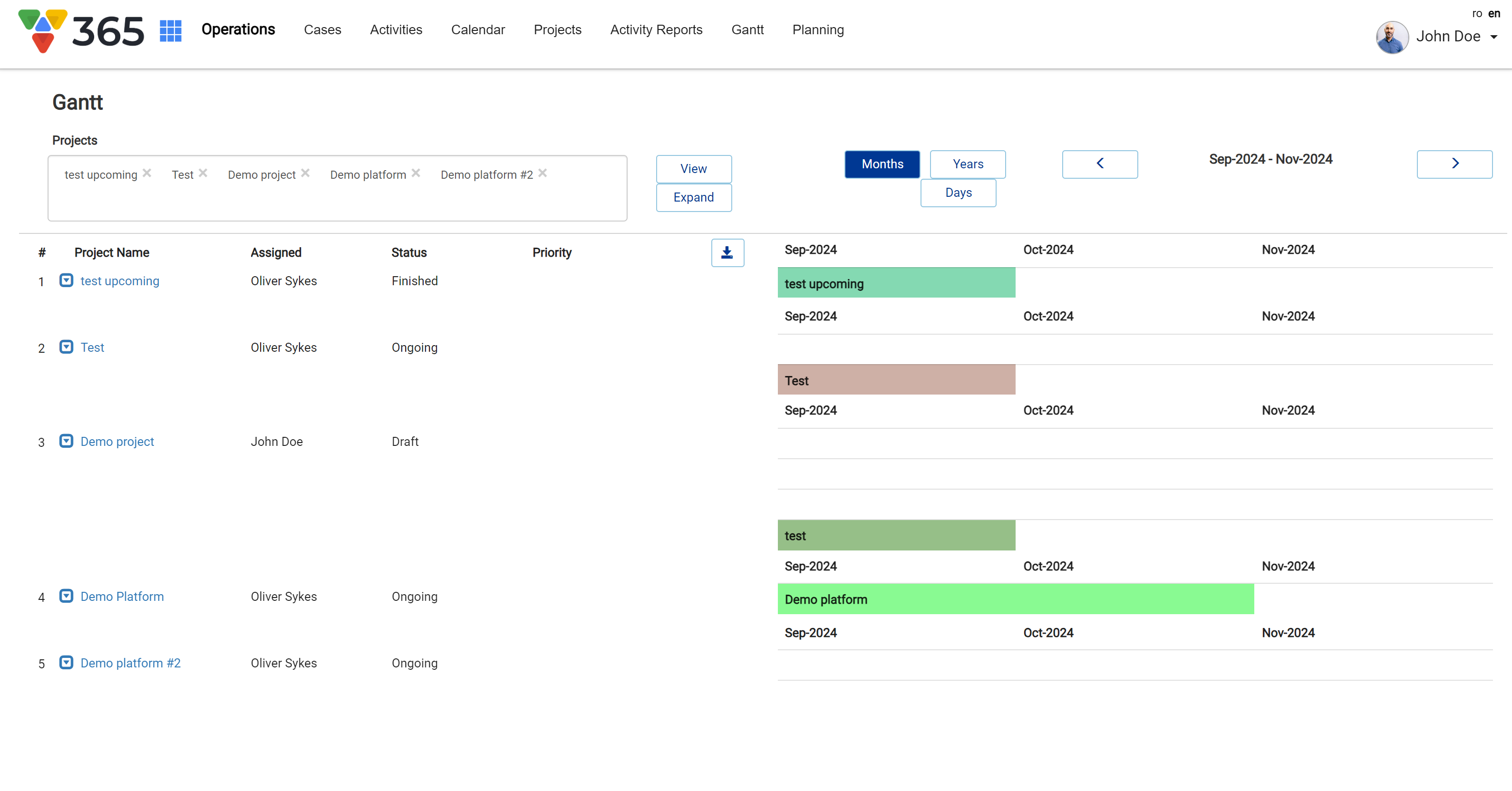 All projects’ details can be associated with the Gantt chart aggregating in one view all project data: delivery, timeframes, resources, cost and revenue